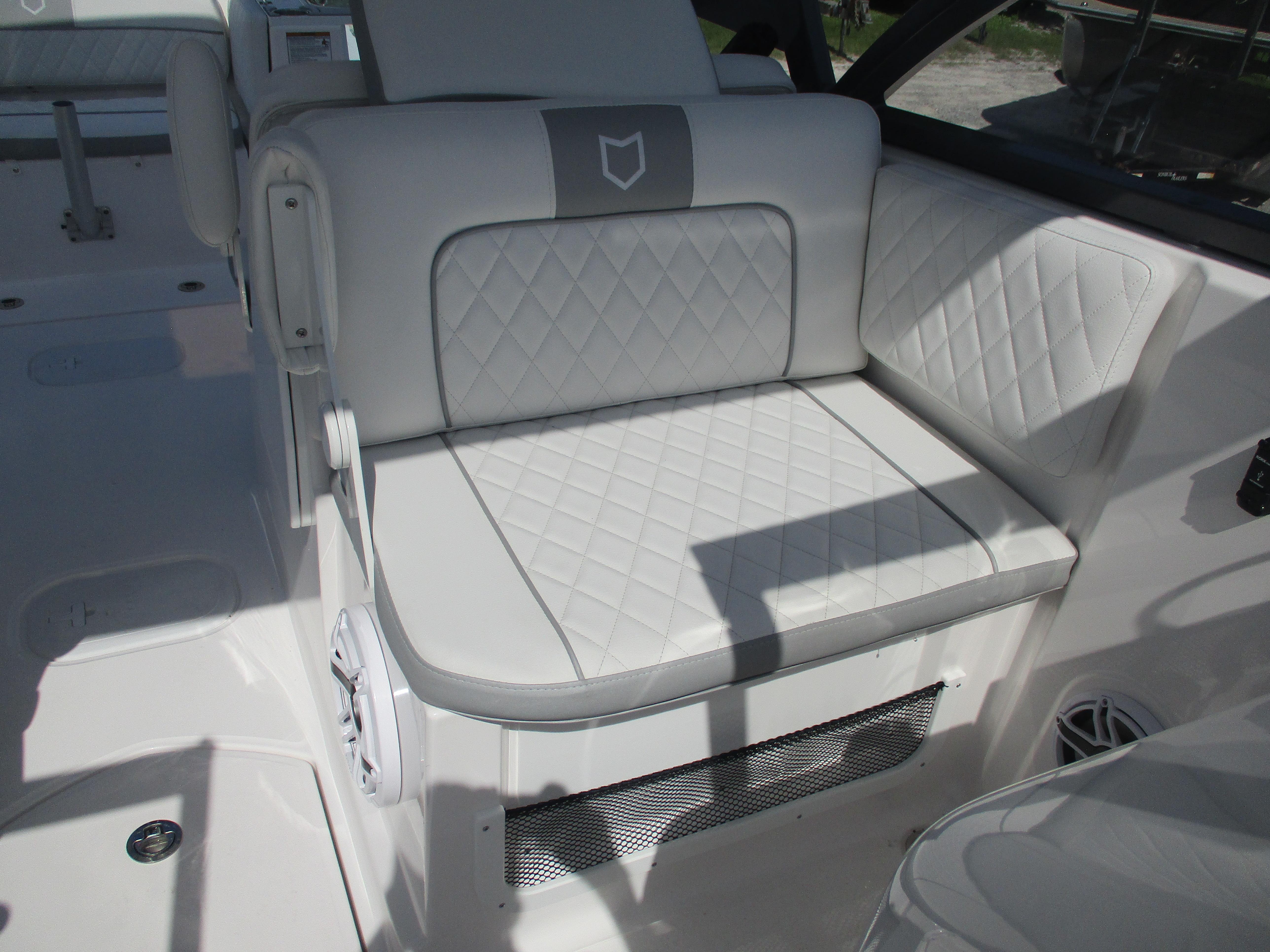 Introducing the largest in its class and new to the model lineup this year, the 288T puts every inch of this 28' family and fishing machine to use with its roomy 9'3" beam. The command center at the helm comes standard with twin 10" navigation screens and is complemented by an entertainment center featuring an electric grill, sink, fridge, and a removable premium cooler. On the passenger side you have a back-to-back premium lounge seat that leads the industry in comfort and class. The aft facing recliner, fold down seating, and removable table bring the comfort of home to the water but easily packs away to transform the aft deck into a first-class fishing platform. Deep bow seating and an impressive windshield that is integrated into the hardtop design will keep your entire family secure whether you are heading to fishing grounds or your local dock and dine. Enjoy the incredible peace of mind knowing you and your family are comfortable and safe in this family fishing machine.