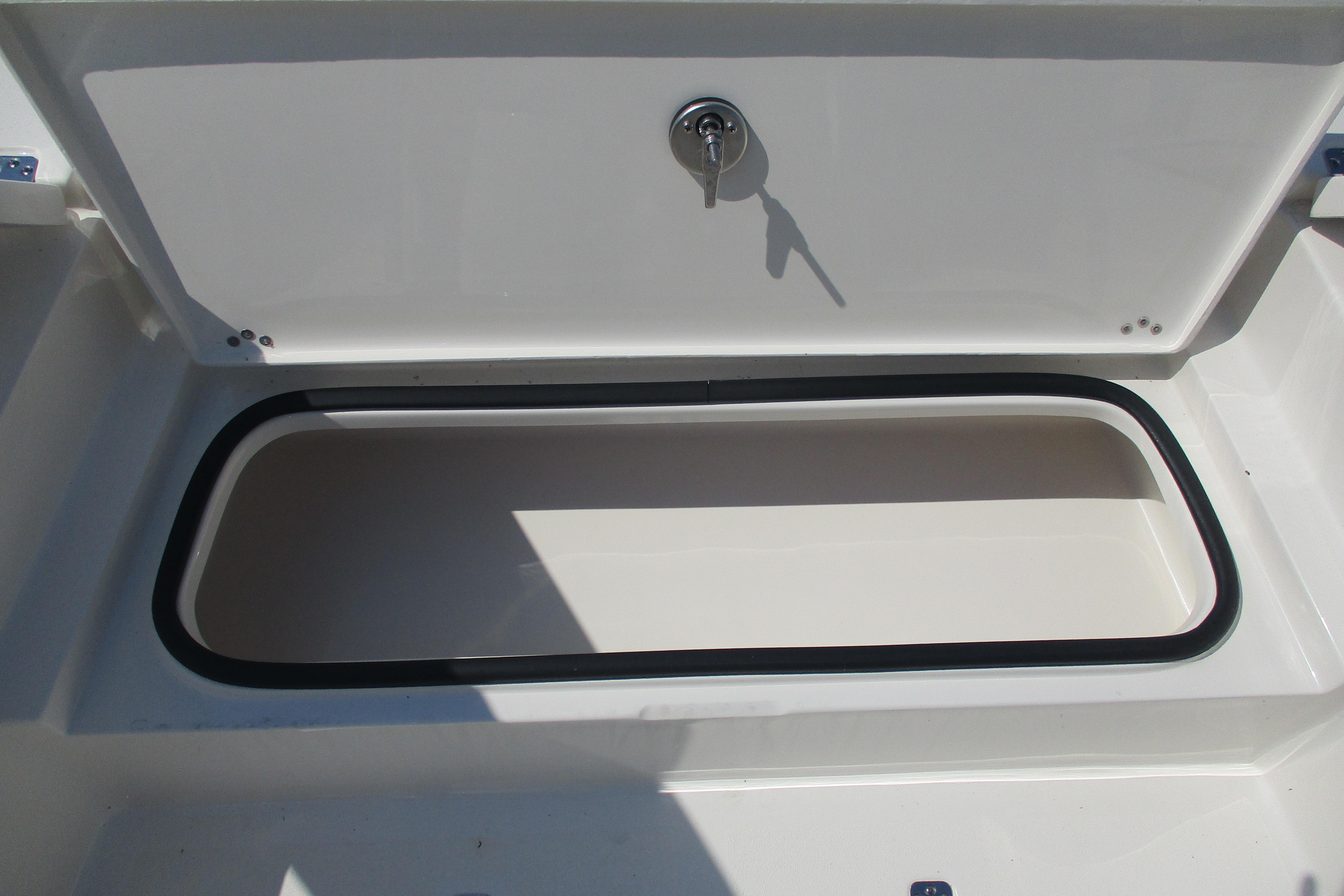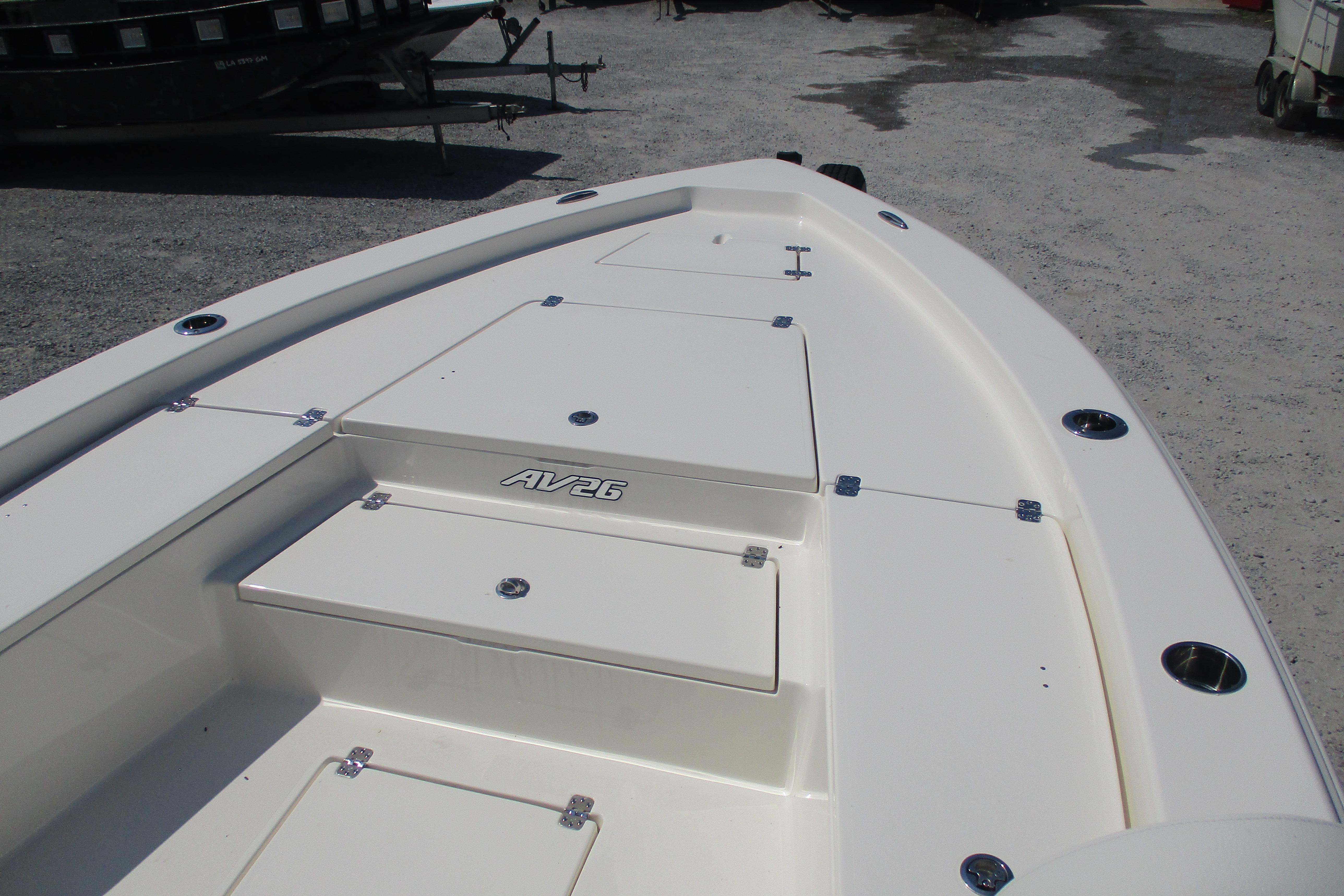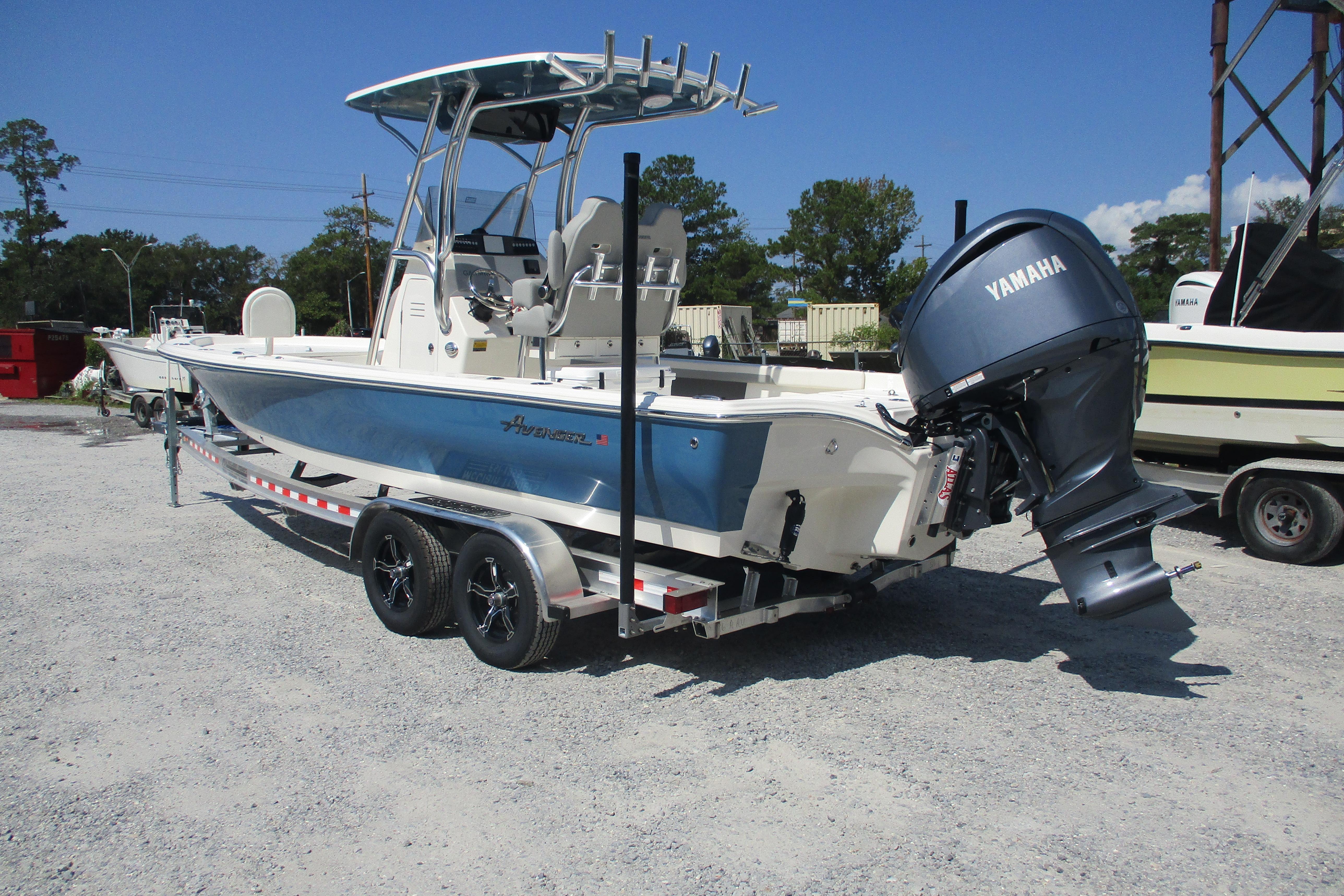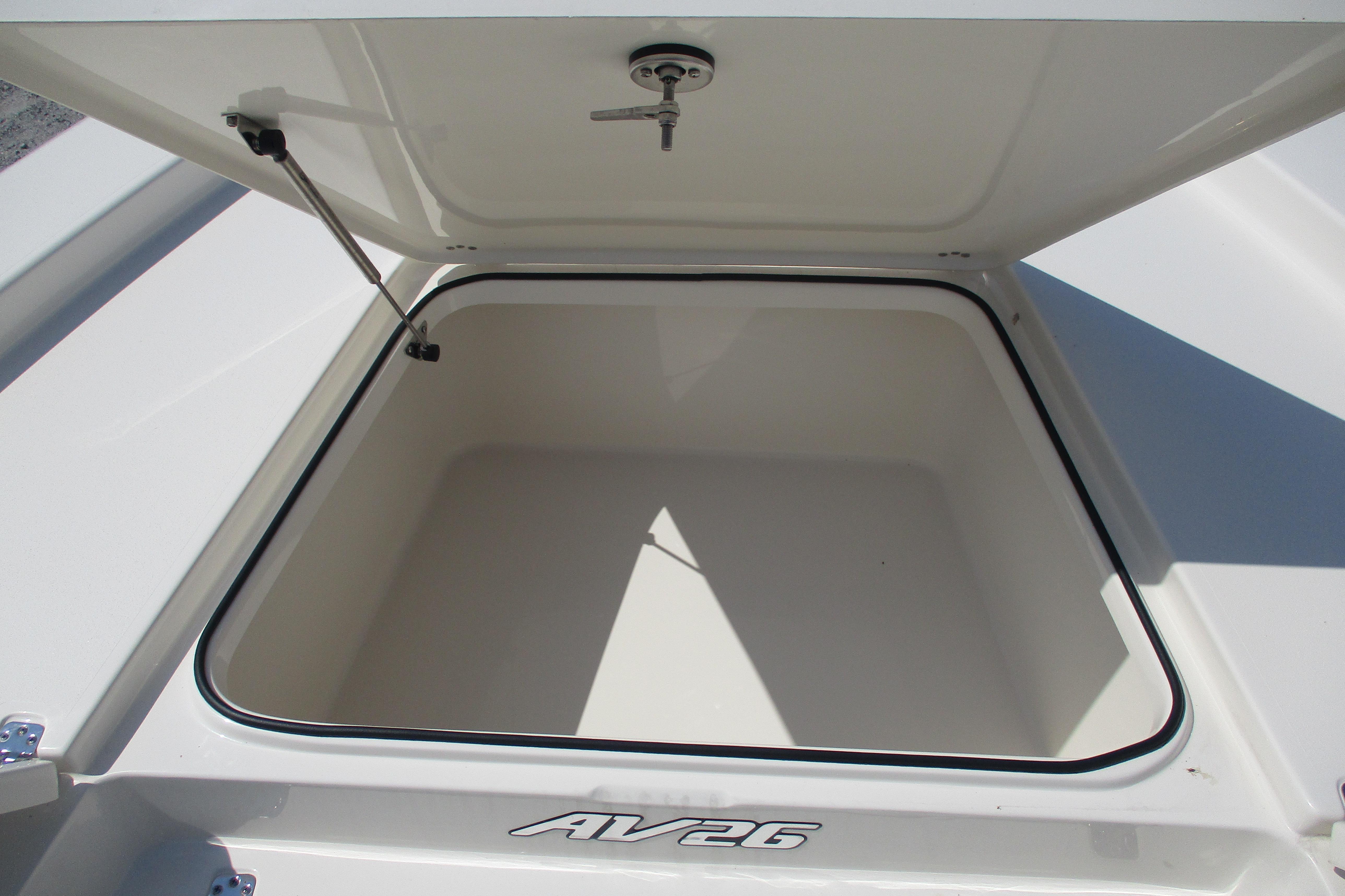 The Avenger AV-26 has an overall length of 26 feet 2 inches and a beam of 8 1/2 feet built with the serious fisherman in mind. This stable fishing platform is complimented with standard equipment like two live release and one bait well, dual lockable rod storage boxes, and an anchor locker built to accommodate both bow and stern anchors. The Avenger AV-26 is rated for a single engine of up to 400 HP and features an 89 gallon capacity fuel load, making your favorite fishing spot easily and quickly accessible.