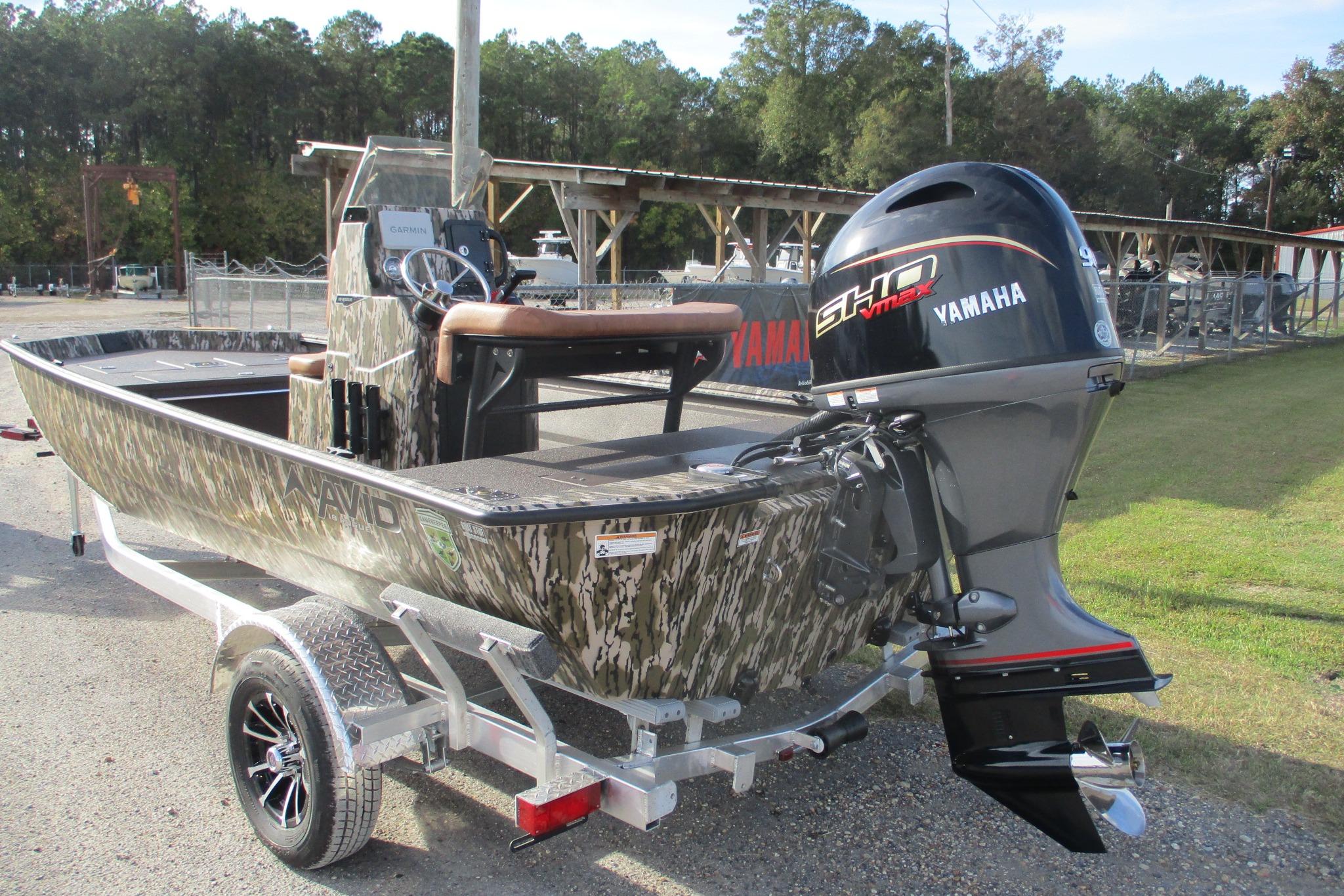 2026 AVID 18 ROGUE CC WITH A YAMAHA VF90XB SHO ON AN ALUMINUM TRAILER WITH SPARE TIRE