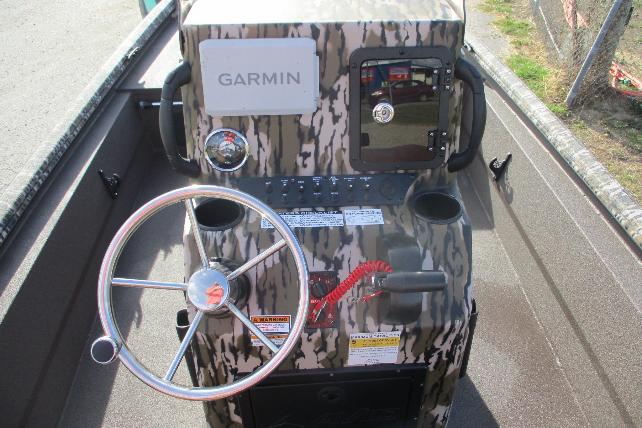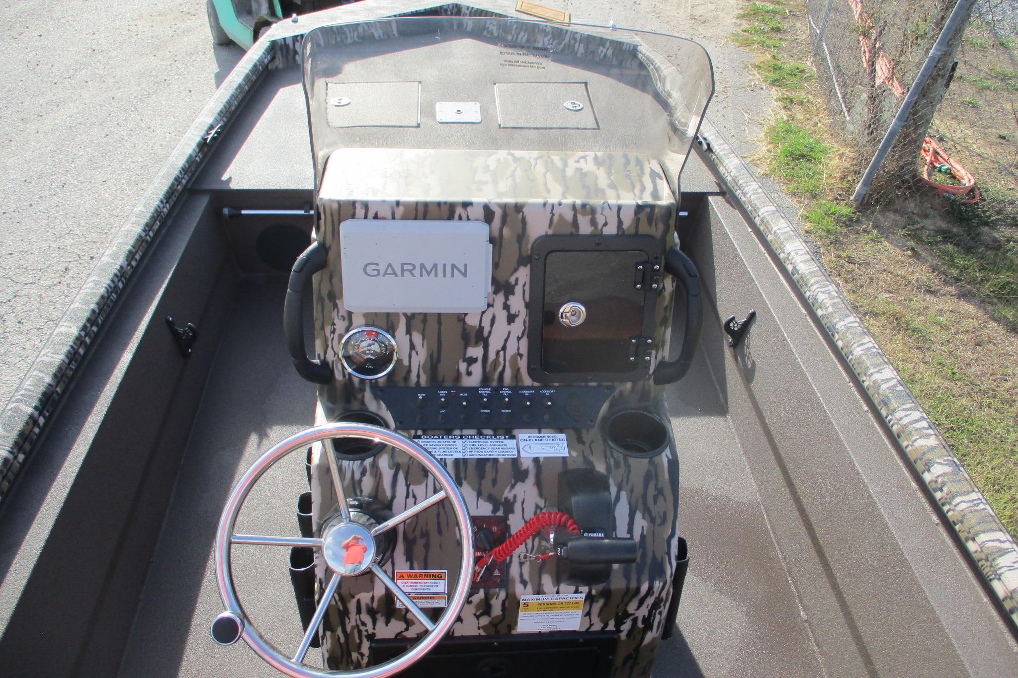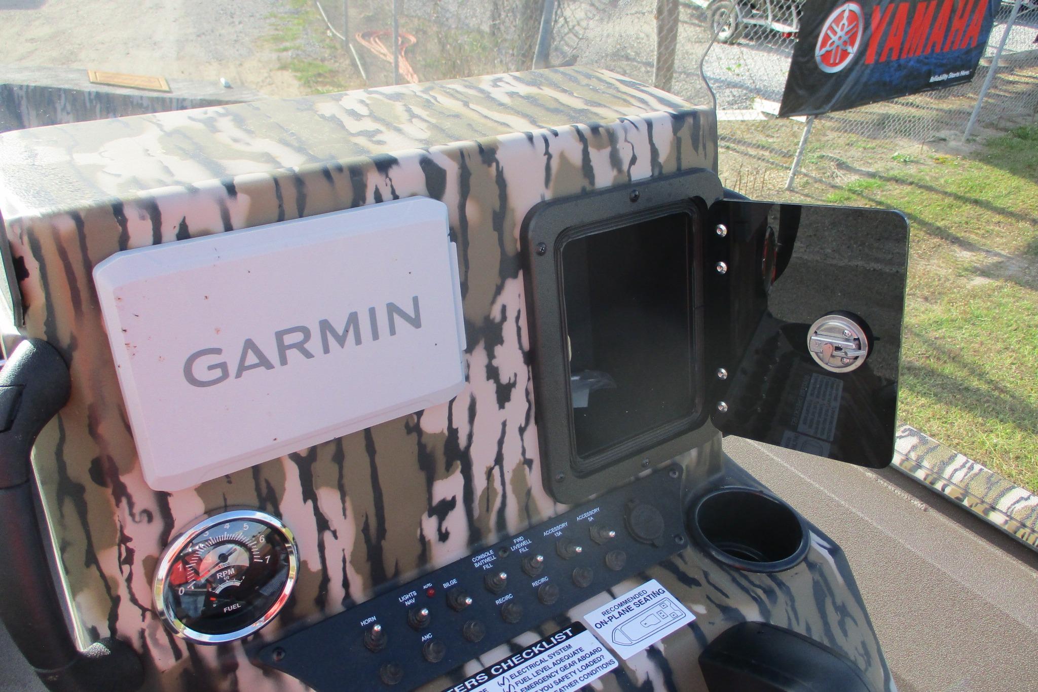 GARMIN 7" ECHOMAP WITH GT23 TRANSDUCER, GLOVE BOX ON CONSOLE, BAYSTAR HYDRAULIC STEERING, GAMEKEEPER CAMO HULL & CONSOLE, BROWN INSIDE, SADDLE UPHOLSTERY, STAINLESS PKG