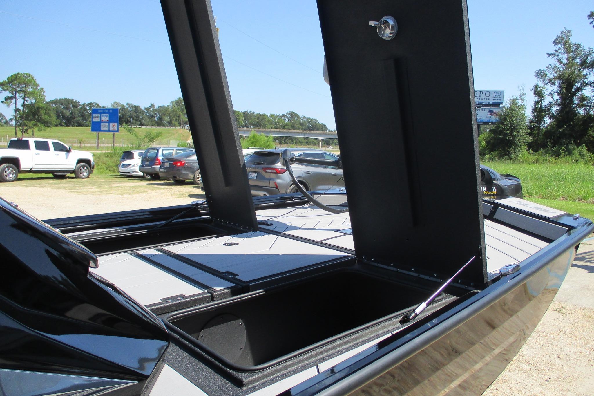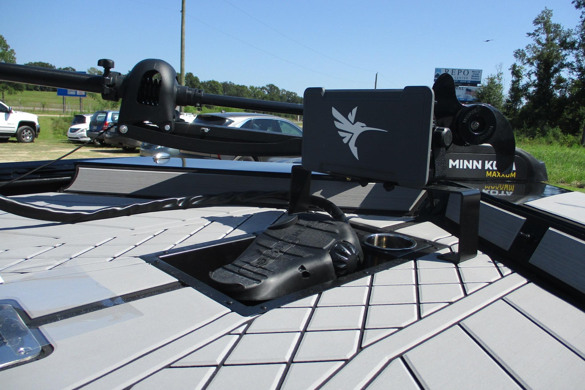 BLACK HULL PAINT, BLACK INSIDE, GREY REFLEX FLOORING, HELIX 9" ON BOW, STEREO WITH 2 SPEAKERS, HOT FOOT, CENTER FLIP UP SEAT, SS LATCHES, BAYSTAR TILT STEERING, HUMMINBIRD 7" ON DASH, MINN KOTA MAXXIUM TROLLING MOTOR