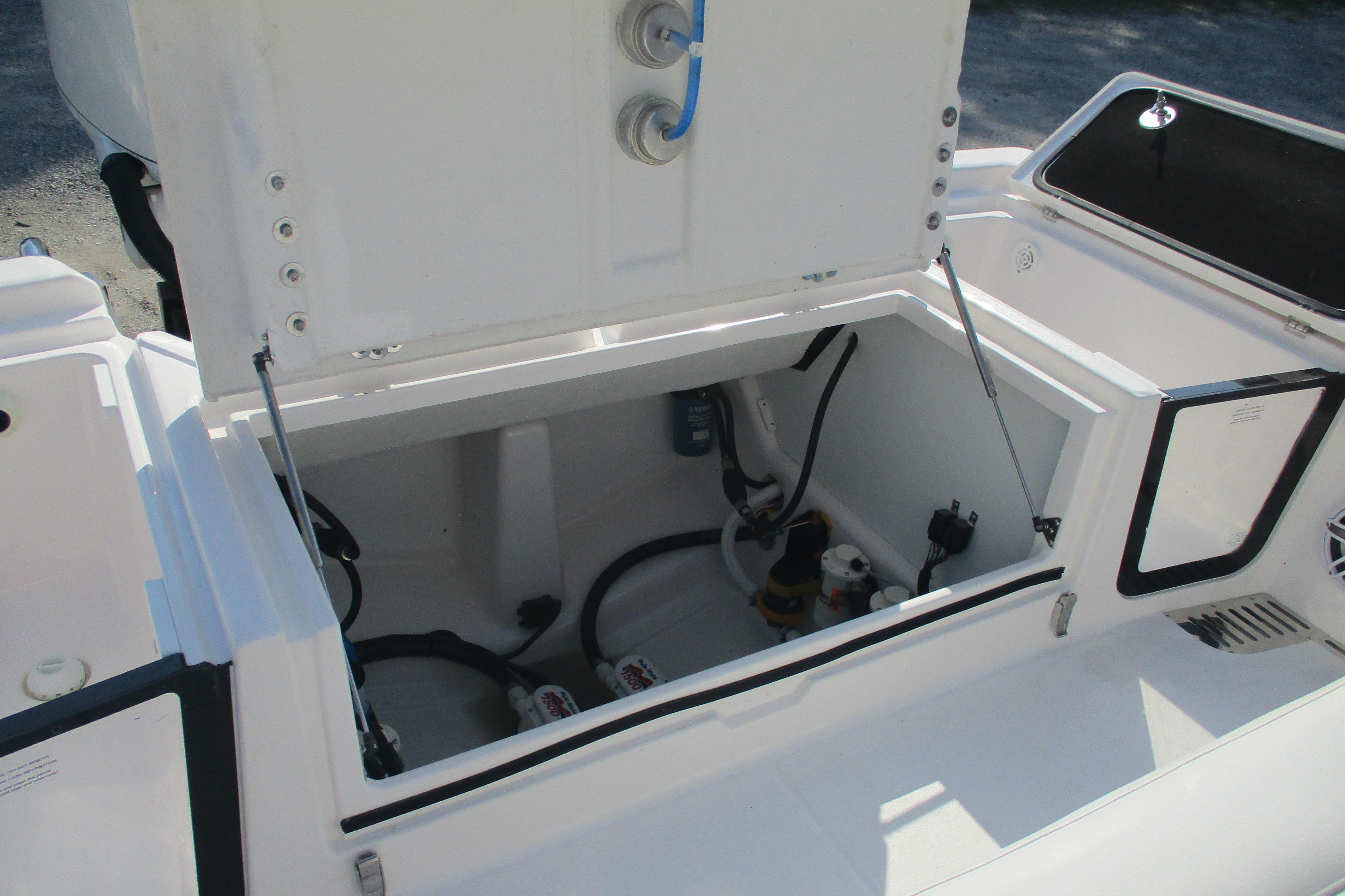 Sea Fox Pro package includes cushioned foot mat, gas shocks on two bow lids, xtra rod holders, quick release fender mts.