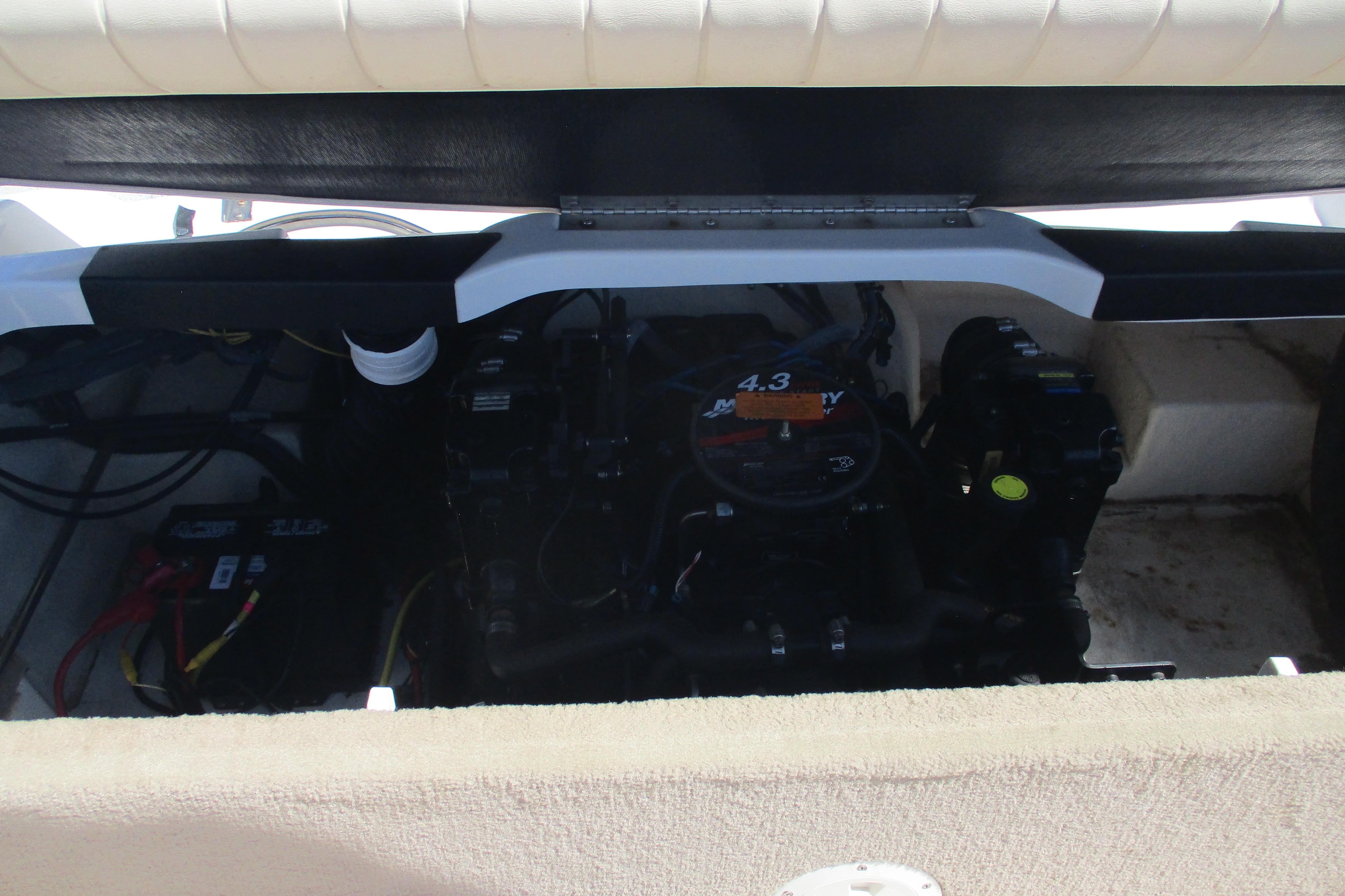 Well, here is a beautiful little runabout that is just clean as a whistle. She is in impeccable shape with obvious attention to detail in both maintenance and appearance. This boat actually looks like new. Stored in a garage for its whole life and believe me the results show. The gelcoat shines like a new penny, and the interior upholstery is near perfect. The engine compartment is bristol clean and well maintained. Anyone interested in this style of boat you won't find a better example anywhere, it is the real deal, perfect for cruising the bayou, pulling skiers or tubes or stopping in at your favorite waterfront bistro.