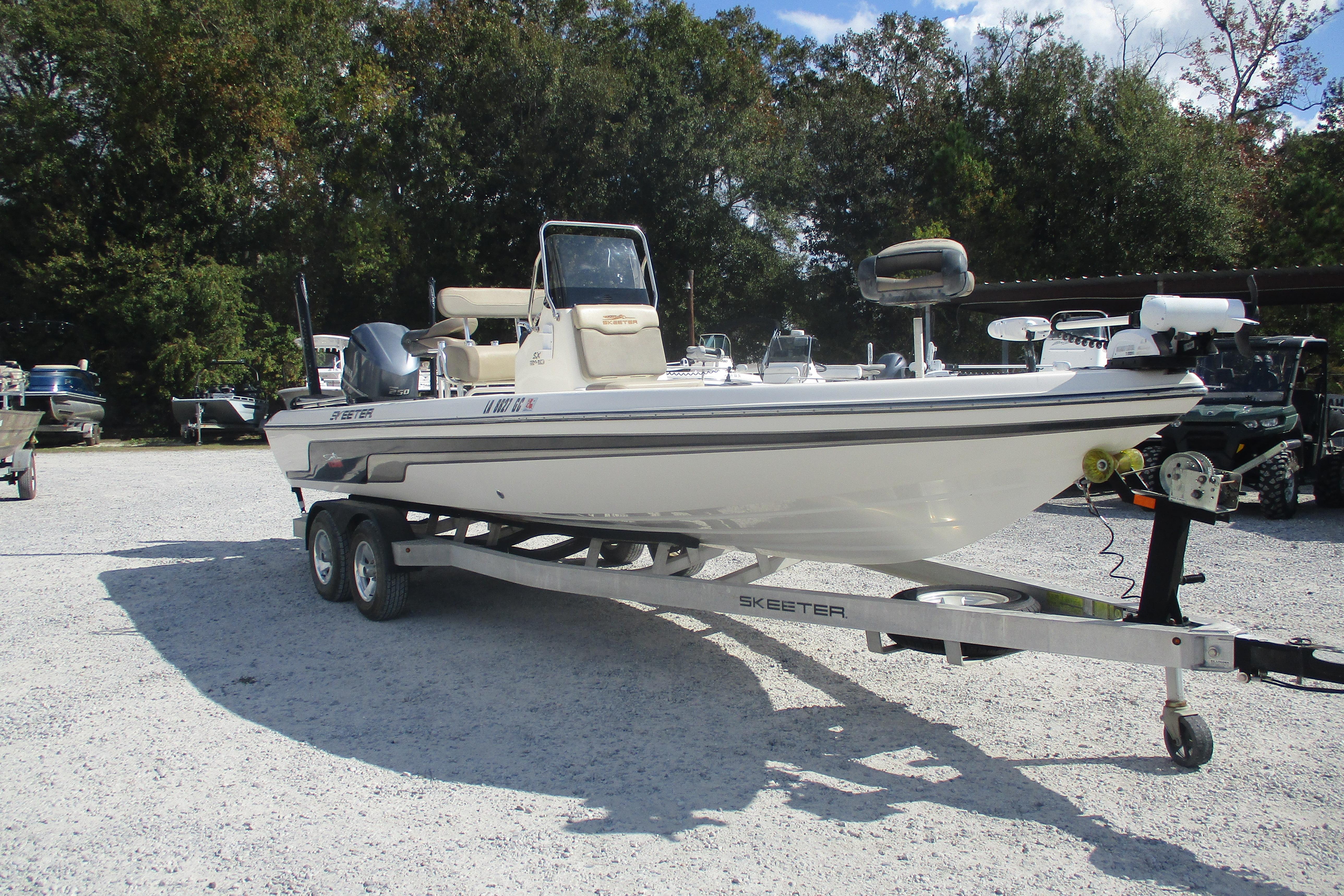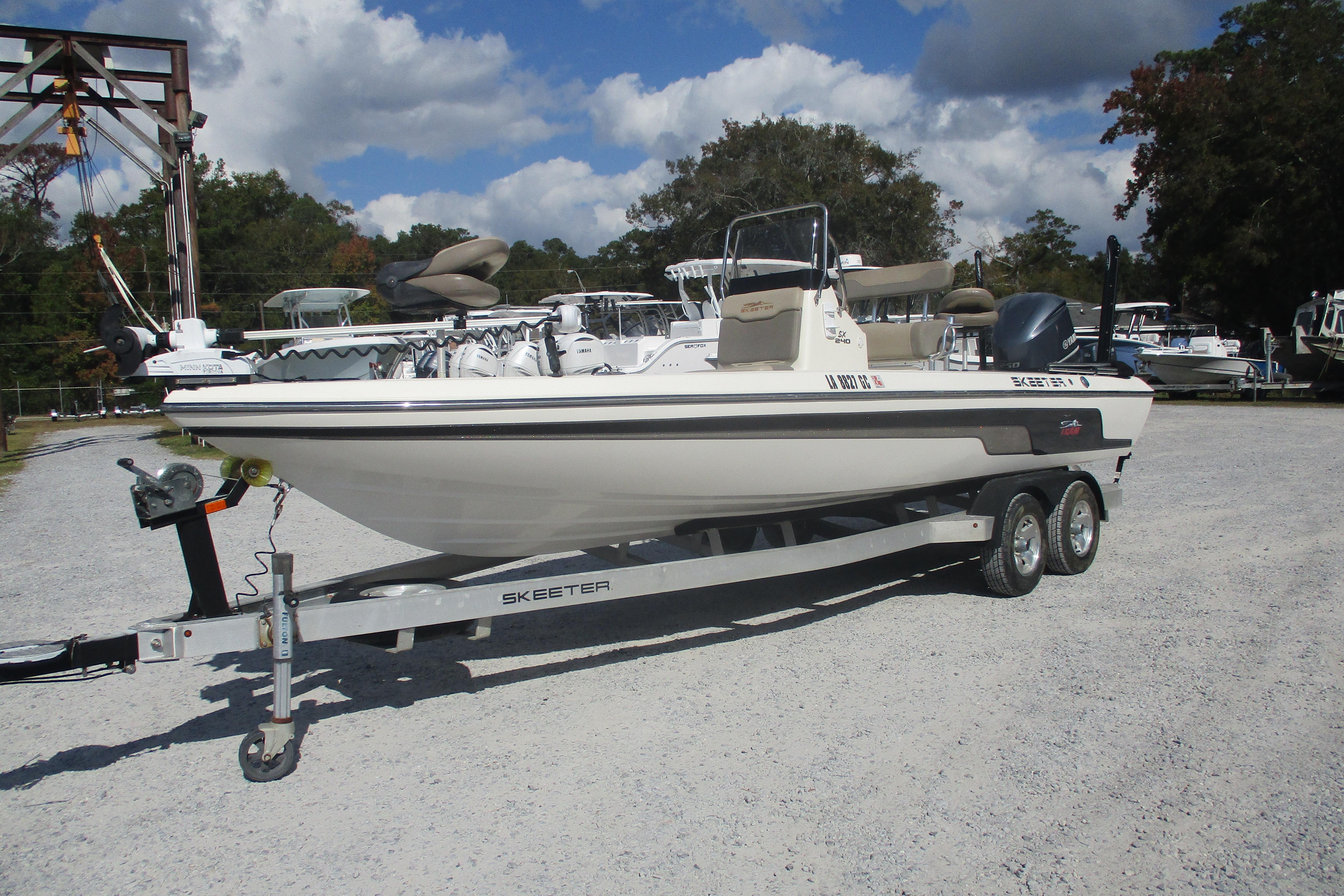 Introducing the 2014 Skeeter SX240, a remarkable bay boat that combines performance and style. With an overall length of 24.08 feet, this vessel is designed for both comfort and agility on the water. The hull, crafted from durable fiberglass and featuring a modified vee shape, ensures a smooth ride and excellent handling. Powered by a robust 250 hp Yamaha F250XCA outboard engine, this boat is equipped for thrilling adventures, boasting 445 hours of use. The stainless steel 3-blade propeller enhances efficiency and responsiveness, making it a joy to navigate. Ideal for fishing or leisurely outings, the SX240 is a versatile choice for water enthusiasts. Its thoughtful design and reliable performance make it a standout option in the bay boat category. Experience the thrill of the open water with this exceptional vessel, ready to create unforgettable memories.