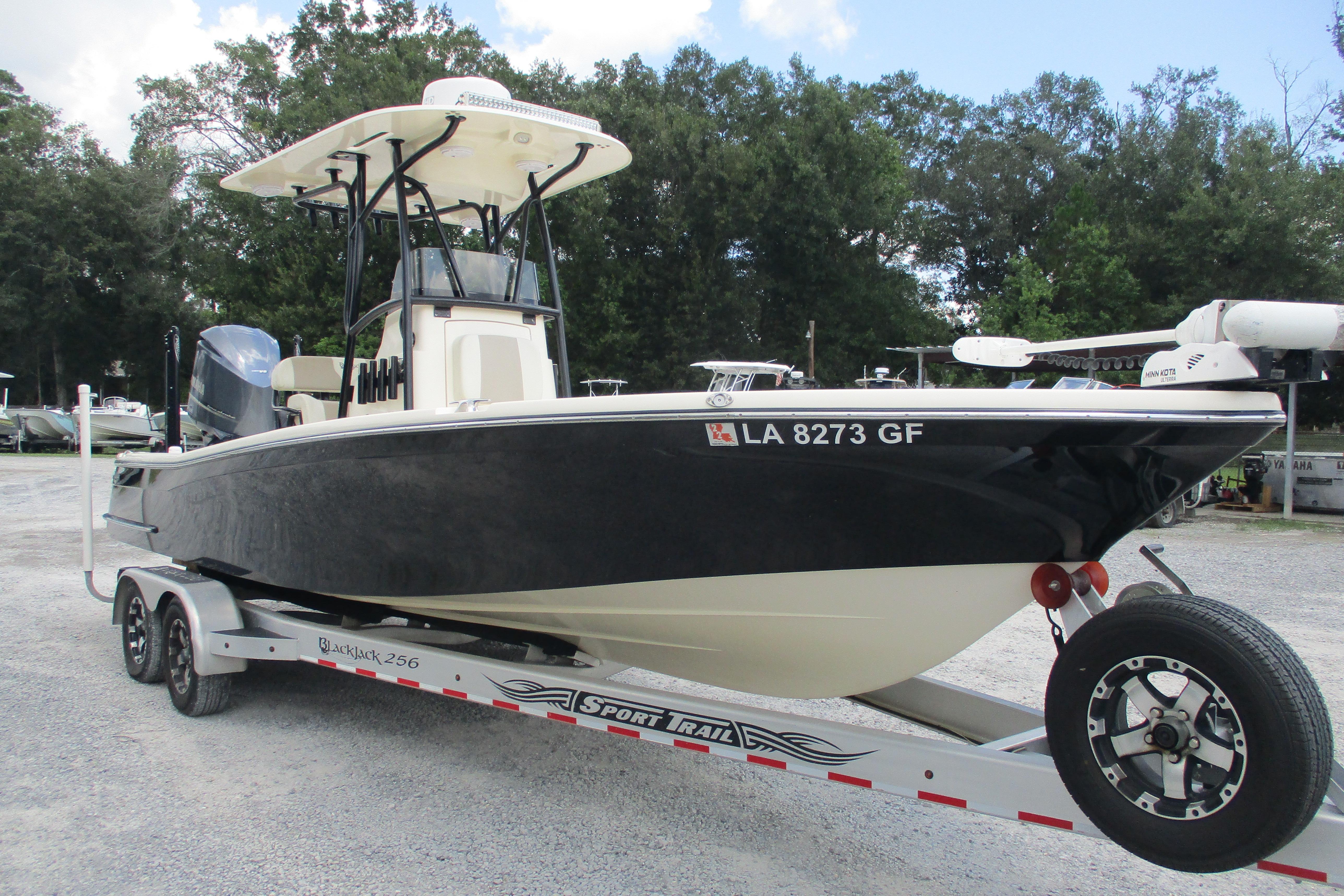 This beautiful 2016 Blackjack 256 has a lot to offer, starting with a F350 Yamaha only 532 hours young, twin blade series power poles, 6" Atlas hydraulic jackplate, twin Garmin XSV7210 screens including Garmin radar, tandem axle Sport Trail trailer in great shape, Minn Kota 36-volt Ulterra self-deploying I-pilot trolling motor, two Minn Kota onboard battery chargers one three bank for trolling motor batteries and one two bank for cranking and house batteries, Yamaha digital gauges, factory powder coated Hard-top, extra rod holders on console, front and rear livewells and so much more, if you are in the market for a large bay boat you should take a long hard look at this one, who knows, it could be a match made in heaven!!!