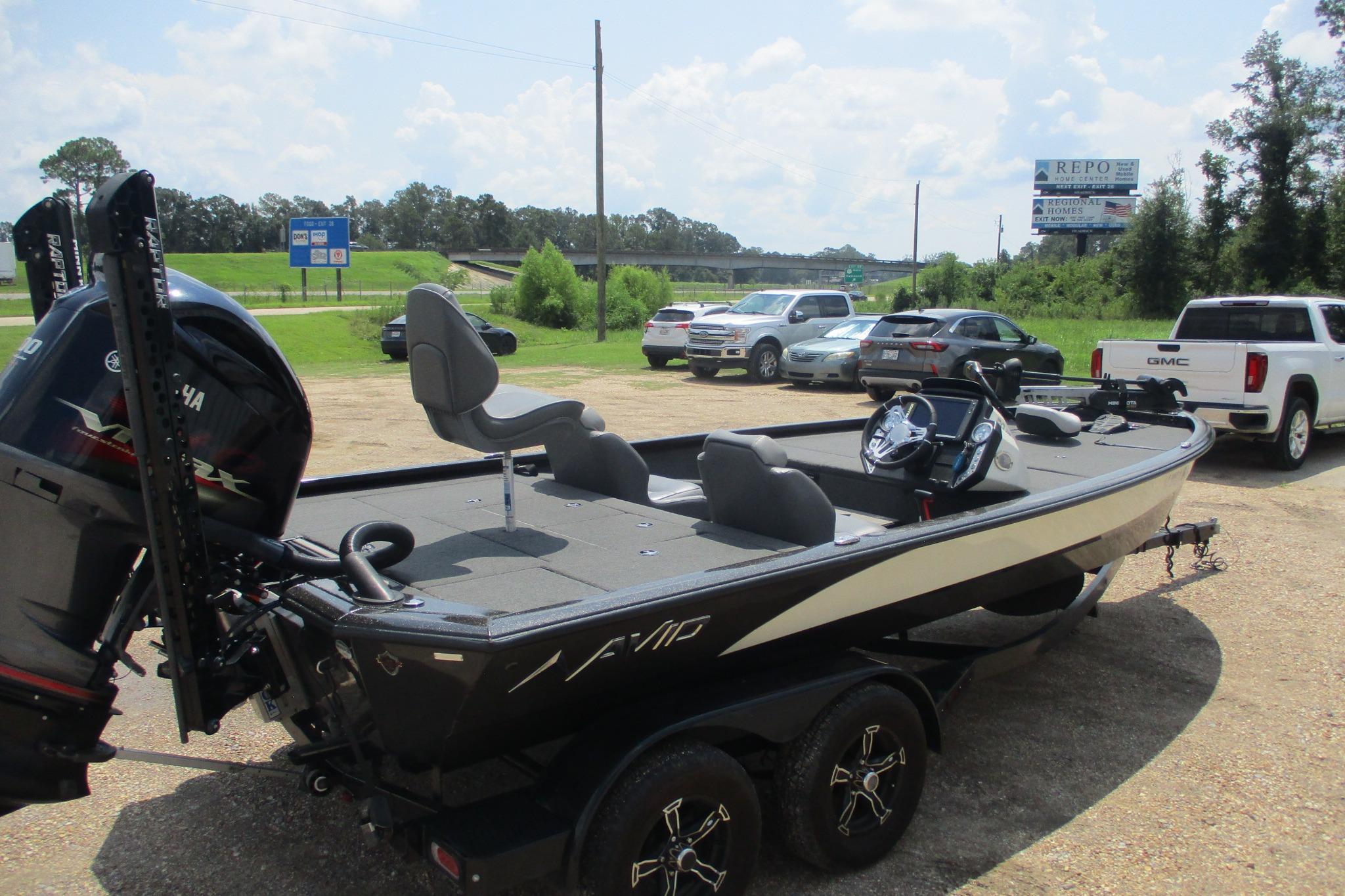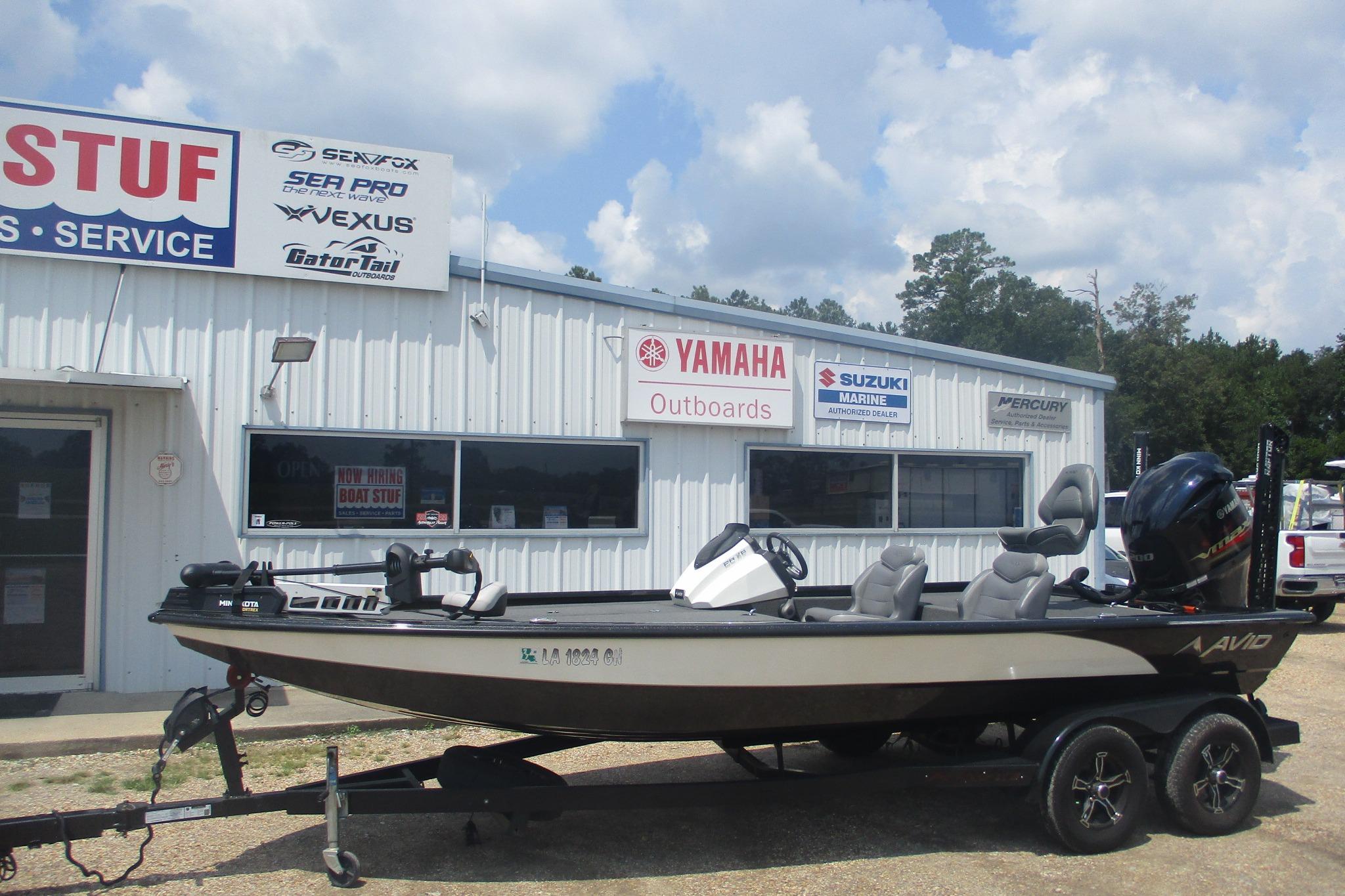 2021 AVID 20XB WITH YAMAHA VF200LA WITH ONLY 109 HOURS ON A TANDEM AXLE TRAILER WITH SPARE AND SWING TONGUE.